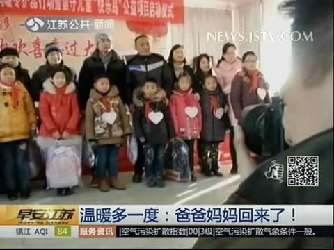 孩子在家默默思念着父母,远方的父母又何尝不牵挂着家中的孩子。为了给孩子们制造一个惊喜,温暖多一度公益行动小组和江苏省及盐城市妇联经过多方努力,终于在春节前,接回了这些孩子的爸爸妈妈。