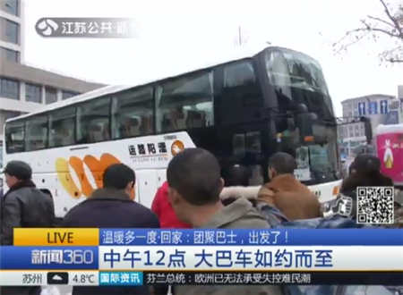 昨天,由江苏广播电视总台主办的“温暖多一度·回家”,送民工兄弟返乡团聚巴士来到了南京地铁4号线北京东路施工点。在这里务工的40多名民工兄弟,他们都来自遥远的四川乐山,即将乘坐温暖多一度大巴,踏上归家的路程。