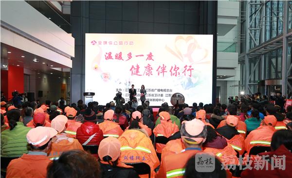 今天(1月6日)上午10点半,由江苏广电总台融媒体新闻中心联合江苏省总工会、省卫计委、省民政厅、省文联、省视协等多家部门和爱心企业共同举办的“温暖多一度 健康伴你行”全媒体公益行动在江苏广电总台的一楼大厅正式启动。江苏省委宣传部副部长、省文明办主任杨志纯、省总工会主席邢春宁、江苏广电总台台长卜宇、省卫计委副主任徐东红、省民政厅党组成员、省老龄办主任夏春青、省文联书记处书记、党组成员王建等相关部门的领导参与本次活动。