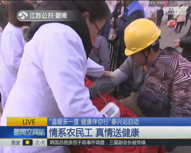 今天,大型全媒体公益行动“温暖多一度 健康伴你行”走进泰兴市,省广电总台融媒体新闻中心联合泰兴市总工会等多家单位,为一线农民工兄弟送上一份医疗健康大礼包。