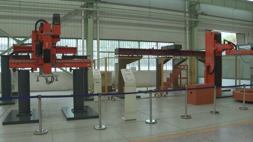 江苏亚威机床的机器人车间里排列了很多已经生产下线即将发往全世界各地的机器人产品,这些机器人很多都具备非常高的技术含量,比如正在调试中的一款水平多关节机器人,就被广泛运用于自动化行业。