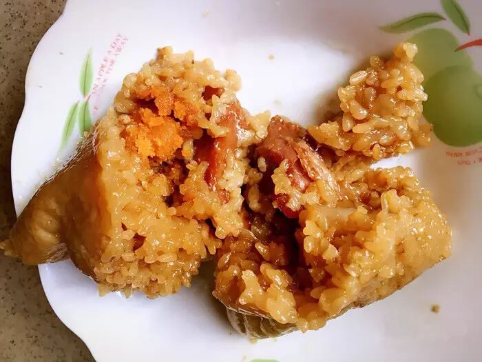 苏州人爱吃甜食,但粽子却偏爱肉粽。清香的粽叶包裹着,新一季的糯米,大块的鲜肉和一整个咸蛋黄。看似油腻,但却真真的回味无穷,唇齿留香。