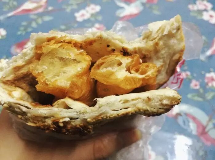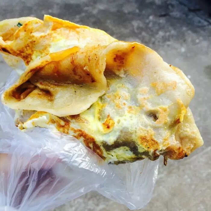 苏州本土的蛋饼最大的特点就是饼皮软,甜酱浓郁。一个薄皮、葱香、裹了油条里脊的蛋饼,能让人幸福整整一天。