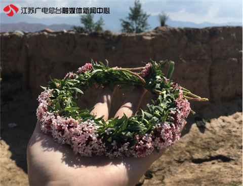 △记者收到一个藏族女孩编织的花环