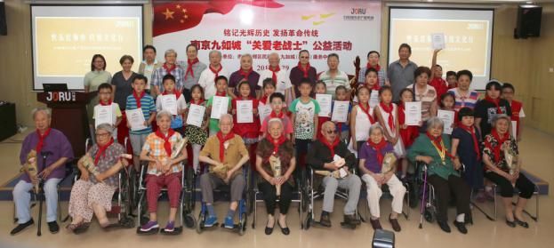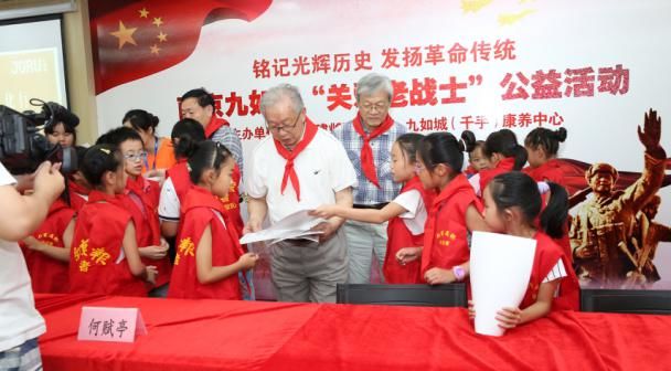 为庆祝中国人民解放军建军90周年,南京建邺区民政局、南京九如城(千手)康养中心、江苏省级机关老干部书画协会联合举办的“关爱老战士”公益活动于7月29日正式揭幕。这场盛大的公益活动,从特别邀请参加抗日战争、解放战争、抗美援朝、中印边境自卫反击战的老战士与少年小记者欢聚一堂,共庆人民军队的光辉节日展开——