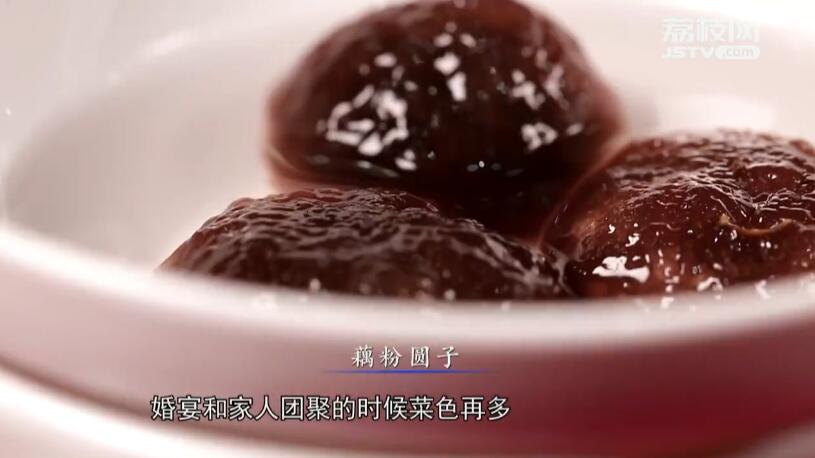 藕粉圆子,是盐城地区特有的传统甜食。清朝年间,由盐城建湖县的一位厨师发明流传至今。藕粉需细腻白润,馅料也要按精心的配比手工调制。把杏仁、核桃、花生、芝麻、瓜子五种坚果烘烤香熟后磨成粉,再用筛子一遍遍过滤,留下最柔软细腻的部分,最后掺入金桔粉和冷猪油揉成团,切成小块搓圆。吃藕粉圆子可以清水作汤,也可以加入几滴桂花酱。淡淡的莲藕清香包裹着层次丰富的坚果粉浓香,婚宴和家人团聚的时候菜色再多,也少不了这样一道美好的甜食来结尾。