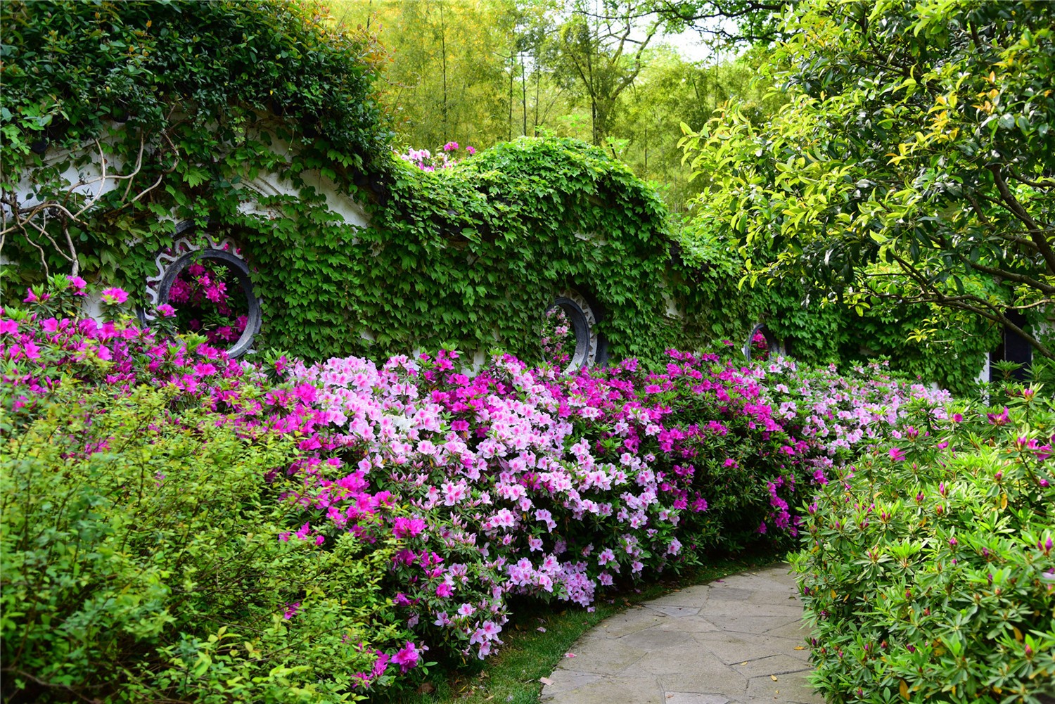 每当暮春时节,杜鹃花开,云蒸霞蔚,繁花似锦。其他季节园景也美不胜收,有垂柳碧桃的江南意境、兰草幽香的山野情趣、粉墙绿蕉的庭院小景。池畔的海棠、溪边的茑尾、林中的红枫、窗间的紫竹,都配植有致,耐人寻味。