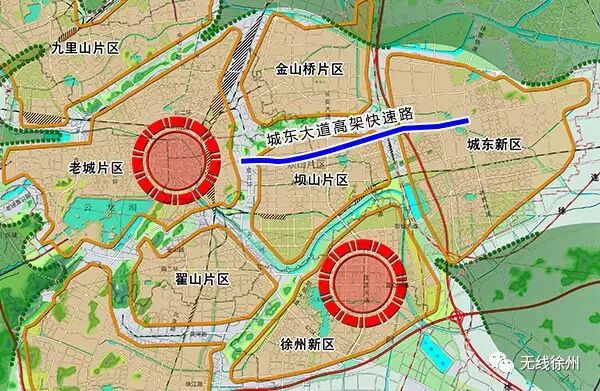 根据徐州市“2+6+15”城市空间规划,老城片区是重要的功能核心,坝山片区和城东片区是未来重点发展的潜力区域。城东大道高架快速路自西向东连接以上三大片区,将是未来徐州市立体交通体系中的重要枢纽。