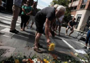 当地时间2017年8月13日,美国弗吉尼亚州夏洛茨维尔市,民众在事发地点献花悼念遇难者。