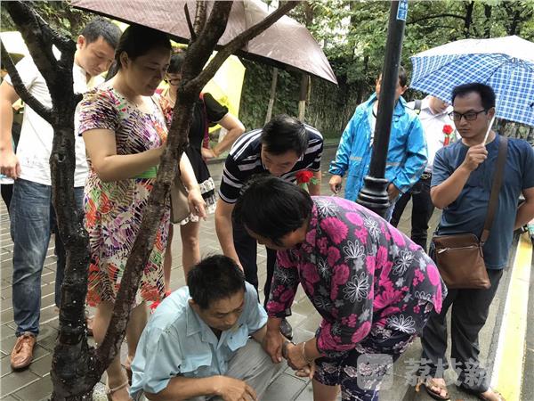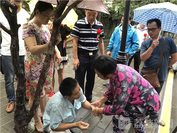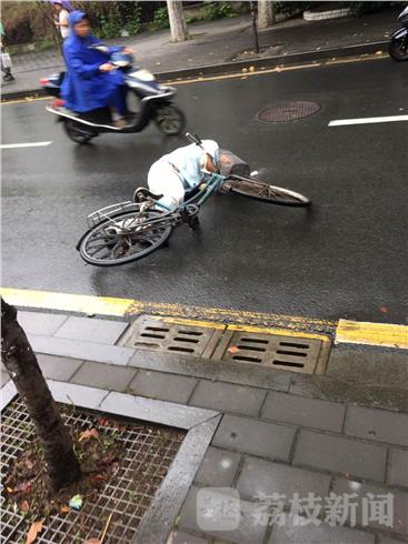 南京有着博爱之都的美誉,一人有难,众人帮忙,蔚然成风。 昨天( 8月16日)上午9时,天空飘着雨。在南京鸡鸣寺门口的道路上,一名60多岁的男子骑着车突然晕倒了,连人带车栽在湿滑的路面上。