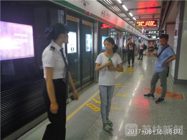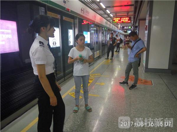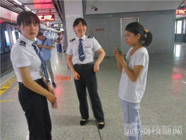 还是在南京地铁泰冯路站,昨天(8月16日)下午6点,一位10岁左右女孩在泰冯路地铁站与家人走失,女孩在地铁站里放声大哭,这引起地铁站工作人员的注意,泰冯路地铁站工作人员热情帮助联系家人。市民询问女孩多大了?叫什么名字?可女孩一直在流泪,精神紧张,四处张望,地铁站两位女工作人员一直提醒小女孩不要乱走动,不要害怕。后经工作人员询问,知道了女孩妈妈的电话,她们帮助女孩经联系上小孩的母亲,最终,女孩安全回家。