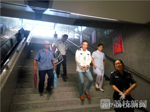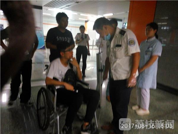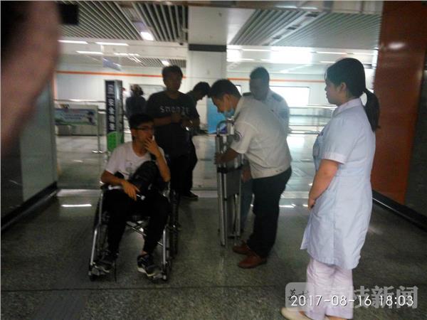 昨天(8月16日) 下午6时,在南京地铁泰冯路地铁站5号出入口,一辆120急救车呼叫着开了过来,4位身穿白大褂的救护人员从车上急冲冲走下,其中两人拿着担架,两人背着救护箱,从地铁五号口进入,几分钟前他们接到市民的电话,“泰冯路地铁站内有人晕倒了,急需抢救。”急救人员顺着十几米的台阶进入地铁站,在进入地铁入口安检的拐弯处,地铁工作人员已经把晕倒的人员用轮椅推了出来。坐在轮椅上的是一位年轻的男性乘客,20多岁,急救人员仔细询问病人的发病情况后,把轮椅推进了电梯,把病人接回医院观察救治。