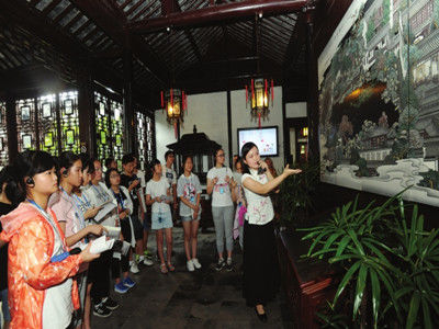 80 students from Suzhou No.10 Middle School went into the Master-of-Nets Garden, learning about Suzhou classical gardens during their summer vacation. They listened to the explanation of the guide and read books about the history of Suzhou gardens. They really enjoyed this activity.