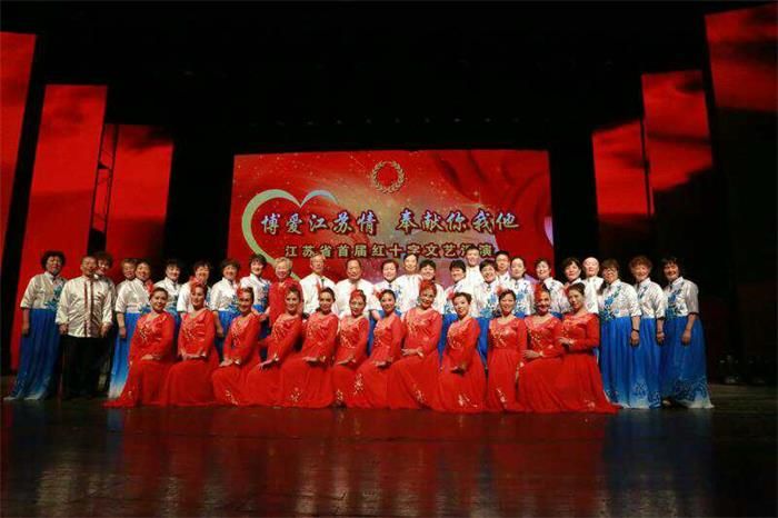2017年 5月8日,南京市红十字会“志友”协会歌舞乐团应邀参加了江苏省首届《博爱杯》红十字文艺汇演,他们可是代表南京市唯一的一个歌舞乐团,同时也是该团第一次参加全省性的大型演出。在省市红十字会和省演艺集团的支持下,经过几轮筛选和改进,乐团最终确定大合唱歌舞表演《红十字颂歌》为演出曲目,并精心编排舞蹈动作使悠扬的歌曲和优美的舞步演绎相得益彰,最终荣获江苏省首届“博爱杯”红十字文艺汇演风采奖奖杯!当南京市红十字会刘文华总干事当着全团人员的面将这个沉甸甸的奖杯交到“志友”协会歌舞乐团团长戴兰佩手中时,大家都为了这个来之不易的奖杯欢欣鼓舞。