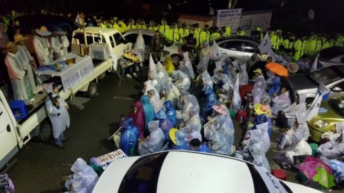 另外,还有部分民众使用卡车和运输车堵住了道路。若想把“萨德”装备运输到星州高球场所在的达摩山,这条路是必经之道。除这条路之外,当地居民当天还堵住了通往韶成里会馆的三条道路,并与警察发生了摩擦。韩国警方当天出动8000余名警力处理局面。