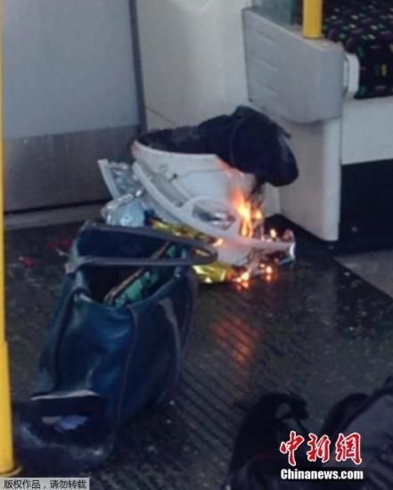 当地时间9月15日,英国伦敦地铁西伦敦区发生一起爆炸事件,部分乘客在踩踏事故中受伤,也有人面部被烧伤。图为视频监控拍摄的发生燃烧的不明物体。