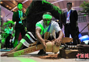 资料图:南博会主题国马尔代夫主题馆内现场表演传统手工艺品制作
