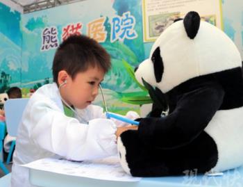 其中,熊猫守护者训练营尤为受小朋友的欢迎,里面设置了熊猫医院、熊猫建筑师、熊猫厨房、熊猫护行队。小朋友们争相扮演 " 大熊猫饲养员 ",像模像样地模拟熊猫生病检查治疗、搭建熊猫家园、制作熊猫食物等过程,近距离感受如何照顾大熊猫。