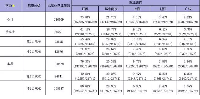 单就南京大学来看,2017年接近半数(41.26%)的已就业毕业生选择留在南京,所以95%南大学生选择离开南京就业,这一论断不足以让人信服。