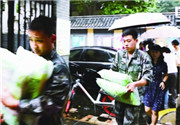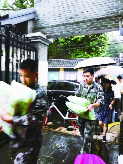 张玉华老将军的家人冒雨给社区困难居民送节礼 本报记者 于洁尘摄