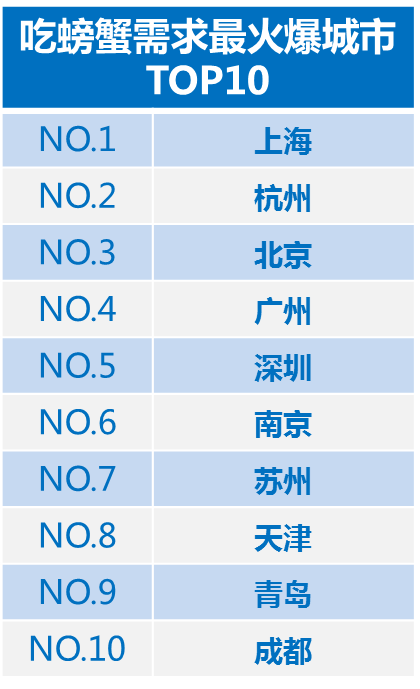 携程美食林大数据显示,9月20日至25日期间,以“大闸蟹”、“青蟹”、“梭子蟹”为关键词的搜索量环比增长超过2000%,不到一周时间累计搜索量突破百万人次,南京在吃螃蟹最火爆的城市中排名第六。