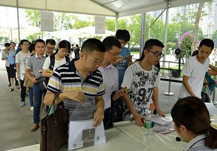 资料图:《成都实施人才优先发展战略行动计划》出台后,吸引了来自各地的人才和大学毕业生,成都天府新区等一些政务服务中心申请、等待办理落户手续的民众排起长队等待办理。 中新社记者 刘忠俊 摄