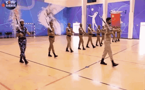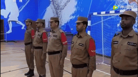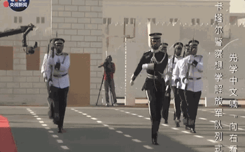 视频中卡塔尔警察伴随着《解放军进行曲》,在中文号令指挥下踢着正步前进,这混搭,可以说是非常厉害了。