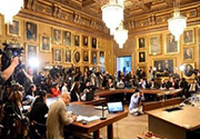 资料图:当地时间2016年,瑞典斯德哥尔摩,诺贝尔奖项获奖者被公布。