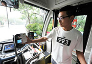 资料图片:7月2日,乘客在青岛交运31路公交车上使用手机支付公交车费。