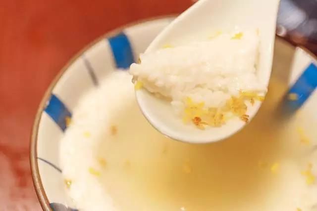桂花粥也是一到传统名点,把桂花和粳米放在一起熬制,桂花的香气和粳米的软糯融合在一起,每一口入嘴都甜糯丝滑。