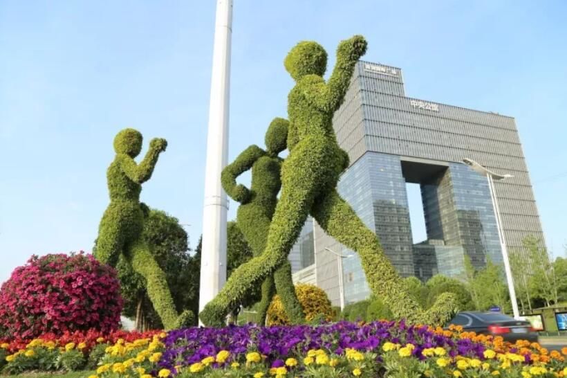 “拼搏”绿雕在江东中路奥体中心段中分带,绿雕立意是指生命在于运动,人们以矫健的身姿诠释着都市的活力。都市的美,是搏击的长剑,是音乐的漫步,是冰雪上舞动的精灵,是挺直了躯干舒展满怀的志向,倾注出自己的全部力量,通过充满动感的运动人物来展现城市的健康发展与活力无限。
