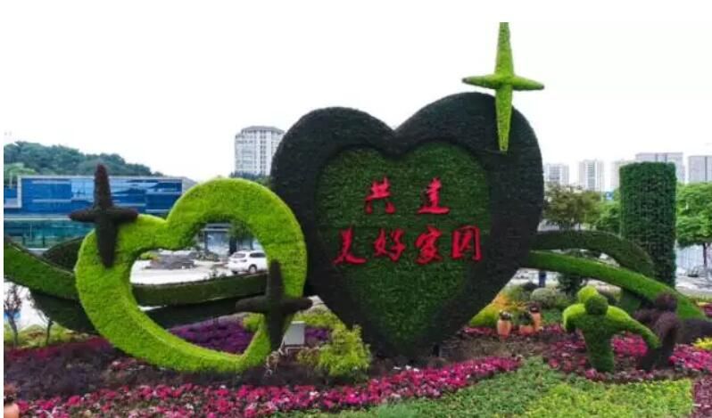 “共建美好家园”绿雕在金箔路与小龙湾路交汇处,立意为街道马路宽敞整洁,窗口服务文明热情,市场环境井然有序,文化活动丰富多彩。让城市更文明,让生活更美好,让我们手拉手,心连心,共建美好家园。