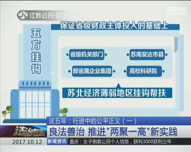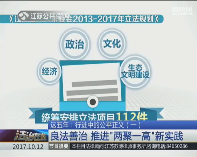 开栏语:党的十八届四中全会开启了全面依法治国的新征程,站在新的历史起点上,江苏大力开创法治江苏建设的新局面,让法治成为江苏发展又一核心竞争力。江苏广电融媒体新闻中心推出系列专题报道《这五年:行进中的公平正义》。