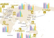 东京继去年首次超过巴黎跻身三甲之后,今年在“文化互动”和“方便度”两项指标的得分进一步提高,拉近了与第二名纽约之间的差距。新加坡是亚洲整体品质均衡度最高的城市,除“宜居性”之外的所有其他指标得分均位列前十强之内。值得一提的是,新加坡凭借其丰富的自然环境和一流的空气质量跻身“环境”指标第三名。首尔连续第六年总体得分位列第六,由于拥有大量的专利申请并汇聚了大批研究人员,在“研发”指标上表现强劲。虽然香港总体排名从第七滑到第九,但“方便度”指标排名仍然极高,悉尼在“宜居性”高分支持下七年来首次跻身总体排名十强之内。
