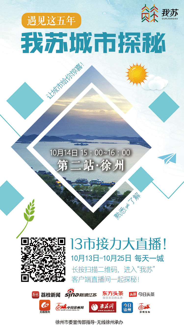 扫上面进入直播间~徐州站的直播会在“我苏”客户端、荔枝新闻、新浪江苏、东方头条、今日头条、无线徐州、徐州发布、今日徐州、中国徐州网、淮海网同步播出。看直播之前欢迎抓紧时间为你所在的城市继续打call~