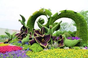 绿雕“花开”和“鸣春”
