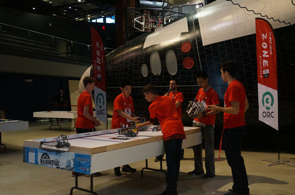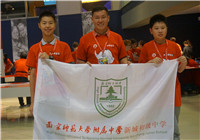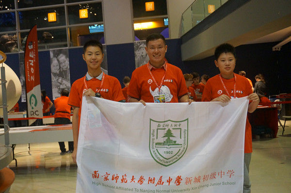 加拿大当地时间2017年10月6日下午蒙特利尔市Le Cosmodôme航天营,经过多天激烈的角逐,南师附中新城初级中学的两位同学捧回了国际青少年机器人精英挑战赛冰球项目中学组的亚军。这项荣誉来得很不容易。开赛前45分钟,还有一个小插曲,他们的机器人被指出不完全符合参赛标准。两位同学急中生智,重新设计了机器人击发球的结构,赢回了宝贵的参赛资格并最终取得了优异的成绩。