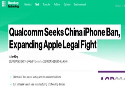 北京时间10月14日凌晨,据美国彭博社报道,著名芯片商高通在中国发起了一项诉讼,其在北京法院起诉苹果公司,要求禁止苹果公司在中国制造和销售iPhone智能手机。