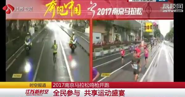 今天上午七点半,2017南京马拉松鸣枪开跑,来自世界各地的两万八千名选手参加了比赛。 江苏台记者 黎明:“虽然此时天空下着雨,但是却丝毫浇灭不了大家跑马的热情。今年南京马拉松比去年多出了7000人,这既是一场数万人的狂欢,同时也是一场勇敢者挑战自我的特殊旅程。”
