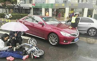 此时天空正下着雨,辅警拿出雨伞半蹲着为受伤者打伞,直至半小时后120急救车赶到现场,辅警又协助医护人员将伤者送上救护车,才继续回到路口指挥交通。