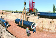 正在紧张施工的陕甘宁盐环定扬黄工程更新改造项目是革命老区的一项脱贫工程。光明日报记者 王建宏摄/光明图片