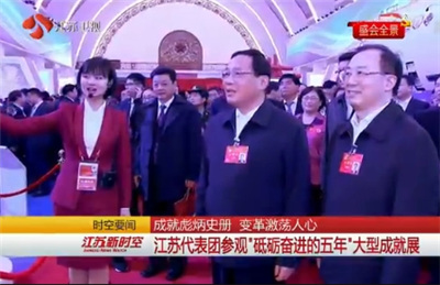 成就展上的不少“江苏元素”,令代表们备感自豪。特色体验区里的“蛟龙号”、“复兴号”,都凝聚了江苏智慧。连云港港集装箱码头,是江苏深度融入“一带一路”倡议的生动写照。入选成就展的江苏照片中,还有不少是绿色发展主题。极不平凡的历史性成就,无比清晰地展现于神州大地;中国梦的美好前景,百倍激发着人民群众的信念豪情。进入新时代,展望新蓝图,代表们信心满满,纷纷表示,将全面贯彻落实党的十九大精神,自觉用习近平新时代中国特色社会主义思想武装头脑,扎实推进“两聚一高”新实践,加快建设“强富美高”新江苏,在新时代中国特色社会主义伟大实践中作出新贡献、谱写新篇章。