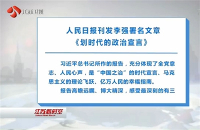 10月20日的人民日报刊发省委书记李强署名文章,题为《划时代的政治宣言》。