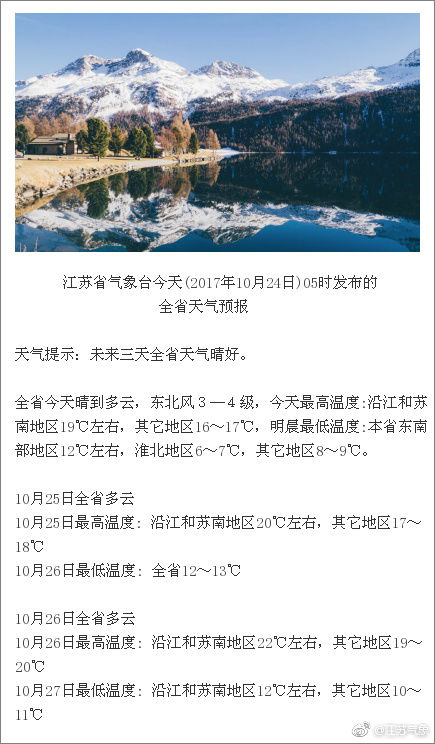 更明显反映降温的,是最低气温。根据江苏气象预报,今天早晨淮北地区最低温度只有7℃左右,沿江和苏南地区最低温在11℃左右,其他地区8到9℃。可以看到,不少地区的低温已经创下了下半年最低。所以,这两天别看天气比较晴朗,但早晚温差也大,该穿的衣服,还是一件儿都不能少。