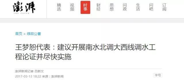 原来,根据上海澎湃新闻的报道,在今年3月的时候,全国人大代表、中国工程院院士、中铁隧道集团有限公司副总工程师王梦恕曾经向十二届全国人大五次会议提交了一份《关于深入开展大西线调水工程论证并尽快实施第一期工程的建议》。