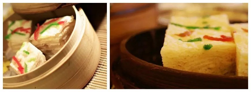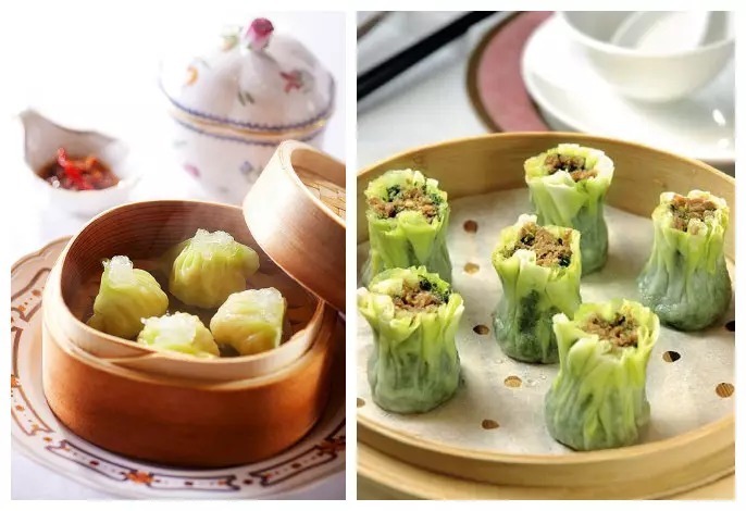 翡翠烧卖皮薄馅绿,色如翡翠,糖油盈口,甜润清香。翡翠烧卖制作有一诀窍——“要得甜先放盐”,放盐提鲜衬甜,能保持叶绿素。