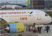 技术人员正在对第二架C919进行发动机点火前的准备工作。