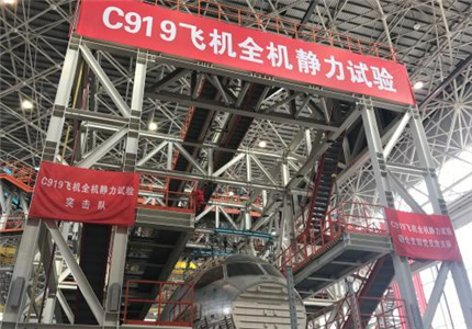 11月4日,第五届中国航空强度技术发展高峰论坛就在C919飞机进行全机静力试验的厂房内举行
