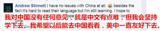 我对中国没有任何意见,就是中文有点难,但我会坚持学下去。我希望以后能去中国看看,美中一直友好下去。