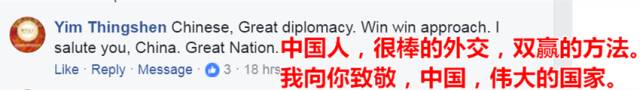 马来西亚网友:中国人,很棒的外交,双赢的方法。我向你致敬,中国,伟大的国家。